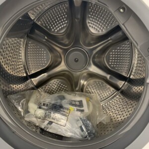 付属品として給水ホース・排水ホース・説明ラベル類がすべて揃っており、動作確認でも洗濯・脱水・乾燥のすべてが正常に動作。庫内の清潔さも保たれており、しっかりとお手入れされていた印象です。お客様のお悩み