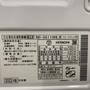 今回は佐賀県鳥栖市にお住まいの40代男性より、日立 ドラム式洗濯乾燥機 BD-SG110HL(2022年製)を出張買取のご依頼をいただきました。