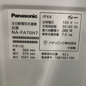 愛知県津島市にてパナソニック全自動洗濯機 NA-FA70H7(2019年製)を出張買取しました