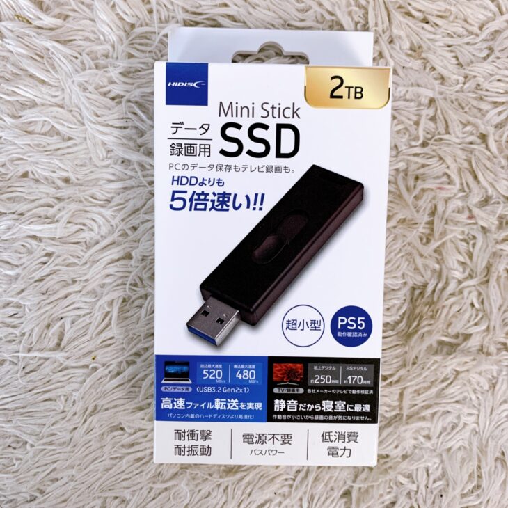 HIDISC Mini Stick SSD 2TBは、USB3.2 Gen2対応の高速転送モデルとして人気が高く、特にPS5やテレビ録画用途にも対応している点が評価されています。未使用・完備品という条件を加味し、今回は3,000円での買取価格をご提示しました。