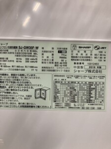 愛知県津島市でシャープ 350L冷蔵庫 SJ-GW35F-W(2019年製)を出張査定しました