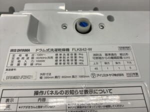 兵庫県たつの市でアイリスオーヤマ FLK842-W ドラム式洗濯乾燥機を出張買取 使用感少なく高価査定