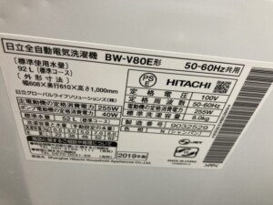 静岡県掛川市で日立ビートウォッシュ BW-V80E(8kg・2019年製)を出張買取 外装に小キズあり 動作良好で高評価