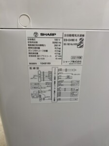 三重県津市でシャープ ES-GV8E-S 洗濯機を出張買取 使用感少なく高価査定しました