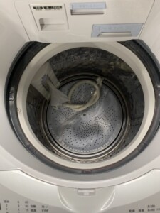 お預かりしたES-TX8E-Wは外観・内部ともにきれいな状態でした。洗濯槽の内部は水アカやカビの付着も少なく、操作パネルの文字消えや変色もありません。付属のホースやフィルター類も揃っており、動作確認でもすべて正常に稼働していました。