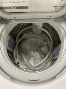 お預かりしたNA-FW90S3は、外装に擦れが見られるものの、年式を感じさせない状態でした。槽内部も清潔で、動作確認でも脱水・乾燥を含め正常稼働を確認。付属品の給水・排水ホースも揃っている点を評価いたしました。
