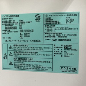 埼玉県宮代町でハイアール BR-85A 冷蔵庫を出張買取 2024年製・使用感の少ない美品 買取り査定