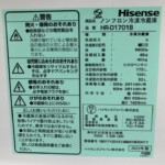 新潟県三条市でハイセンス冷凍冷蔵庫 HR-D1701Bを出張買取|きれいな状態で査定引取いたしました