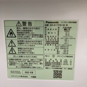 今回は宮崎県都城市にお住まいの男性より、Panasonic(パナソニック)ノンフロン冷凍冷蔵庫 NR-B17FW-W(2022年製)を出張買取にてご依頼いただきました。