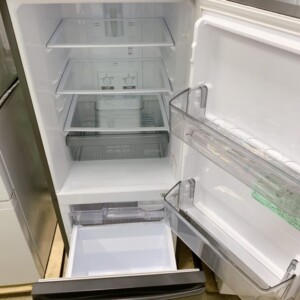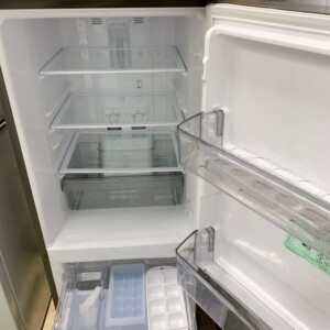 お預かりした冷蔵庫は外装にわずかな小キズがあるものの、庫内は使用感が少なく清潔な状態でした。各棚板・ドアポケットも割れや欠品がなく、冷却動作も良好。庫内照明、温度調節つまみ、冷凍室の引き出しなども正常に動作しており、全体的に丁寧に使用されていたことがうかがえるお品物でした。