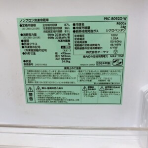 今回は茨城県筑西市にお住まいの40代男性・会社員より、アイリスオーヤマ製 ノンフロン冷凍冷蔵庫 PRC-B092D-W(2024年製)を出張買取にてご依頼いただきました。購入から間もない製品で、全体的にきれいな状態でした。