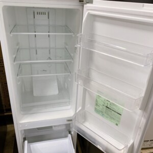 お預かりした冷蔵庫は、外観・庫内ともに非常にきれいな状態でした。白を基調としたデザインで黄ばみや汚れもなく、庫内のガラス棚・ポケット部分も割れやヒビが一切ありません。冷凍庫の引き出しや製氷トレーも使用感が少なく、丁寧に使用されていたことがうかがえます。動作確認でも冷却・冷凍機能は問題なく、内部ライトも正常に点灯しました。