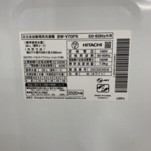 今回は茨城県坂東市にお住まいの40代女性のお客様より、日立(HITACHI)全自動洗濯機 BW-V70F(2020年製)を出張買取にてご依頼いただきました。人気シリーズ「ビートウォッシュ」の7.0kgタイプで、節水性と洗浄力を両立したモデルです。