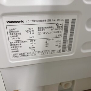 大阪府門真市でパナソニック ドラム式洗濯乾燥機 NA-LX113ALを出張買取|2021年製・11kg大容量モデルを高価査定