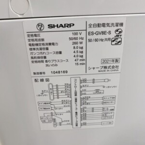 山梨県韮崎市でシャープ ES-GV8E-S 全自動洗濯機を出張買取|2021年製・8kgモデルを高評価で査定しました