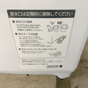 お預かりした洗濯機は、外装・槽内ともに非常にきれいな状態でした。使用に伴う細かなスレはありましたが、目立つキズや汚れはなく、槽の内部も輝きを保っていました。洗剤・柔軟剤投入口も清潔で、糸くずフィルターにも詰まりは見られず、メンテナンスの行き届いたお品でした。動作確認でも洗浄・脱水ともに良好で、状態は極めて良好と判断しました。