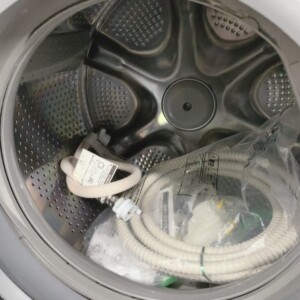 付属品として排水ホース・給水ホースが揃っており、動作確認も問題なく良好でした。乾燥機能も正常に稼働し、全体として中古市場でも評価されやすい状態でした。
