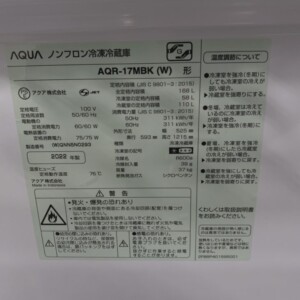 千葉県茂原市でAQUA冷蔵庫AQR-17MBK(2022年製)を2,500円で出張買取しました