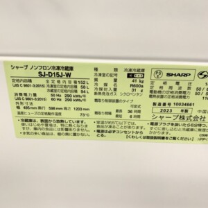 今回のSJ-D15J-Wは、2023年製という高年式であり、150Lクラスの小型冷蔵庫としては中古需要が高いことから、状態の良さを加味し3,000円での買取を行いました。