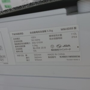 東京都文京区にてTWINBIRD洗濯機 WM-ED55 5.5kgを出張買取|きれいな状態のため査定引取いたしました
