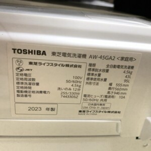 千葉県浦安市で東芝洗濯機 AW-45GA2 を出張買取|2023年製・状態良好品を高価査定しました