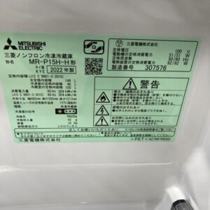 香川県さぬき市にて三菱 MR-P15H-H 冷蔵庫を出張買取|2022年製・きれいな状態のため適正査定しました
