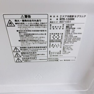埼玉県坂戸市にてニトリ NTR-106BK 冷蔵庫を出張買取|2022年製・外装に小さなへこみありの2ドア冷蔵庫を査定しました