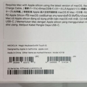 Magic Mouseについては表面にわずかなスレが見られましたが、動作面では問題なく、ペアリング・クリック・スクロールとも正常に確認できました。キーボードはTouch ID対応モデル(MXCK3J/A)で、箱も揃っていました。