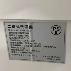 今回は埼玉県久喜市にお住まいの50代女性・主婦・夫婦世帯・持ち家(一戸建て)のお客様より、SENTERN 二槽式洗濯機 N512P208103A(標準洗濯容量13kg/脱水容量10kg)を出張買取にてご依頼いただきました。家庭用としては大容量タイプの二槽式モデルで、普段は作業服の洗い分け用として使用されていたとのことです。