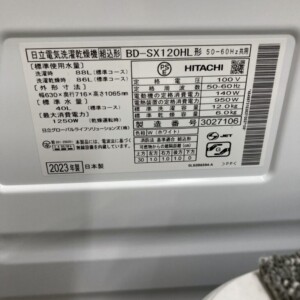 HITACHI「BD-SX120HL」は2023年製の比較的新しいモデルで、節水性や乾燥性能の高さから中古市場でも需要が高い機種です。さらに外観・動作ともに良好だったため、市場相場を踏まえて適切な価格をご提示することができました。