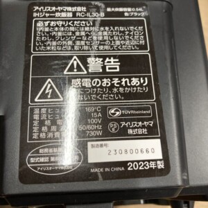 今回は牛久市にお住まいの50代ご夫婦(自営業)から、アイリスオーヤマ IHジャー炊飯器 RC-IL30-B(2023年製・3合炊き)を出張買取にてご依頼いただきました。コンパクトながらIH加熱でふっくら炊き上げられる人気モデルで、まだ新しい年式ということもあり、状態を細かく確認しながら査定を行いました。