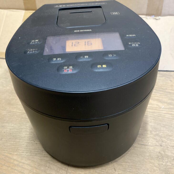 今回は牛久市にお住まいの50代ご夫婦(自営業)から、アイリスオーヤマ IHジャー炊飯器 RC-IL30-B(2023年製・3合炊き)を出張買取にてご依頼いただきました。コンパクトながらIH加熱でふっくら炊き上げられる人気モデルで、まだ新しい年式ということもあり、状態を細かく確認しながら査定を行いました。