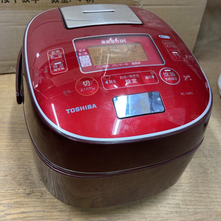 今回は須賀川市在住の60代男性・単身世帯のお客様より、TOSHIBA 真空圧力IHジャー炊飯器 RC-10VSL(ディープレッド)を出張買取にてご依頼いただきました。高火力と真空圧力技術で人気のモデルであり、使用年数の経過はあるものの、丁寧に扱われていた炊飯器でした。