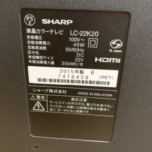 福岡県古賀市でSHARP AQUOS LC-22K20を出張買取|2015年製22型液晶テレビを適正価格で査定しました