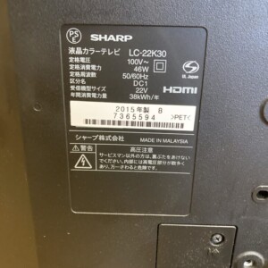 茨城県水戸市でSHARP AQUOS LC-22K30を出張買取|2015年製22型テレビの状態を確認し適正査定しました