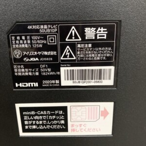 今回は茂原市にお住まいの40代男性より、アイリスオーヤマ製 4K対応液晶テレビ 50UB10P(2020年製)を出張買取にてご依頼いただきました。ご自宅は賃貸マンションで、親子世帯のお客様からの査定となりました。