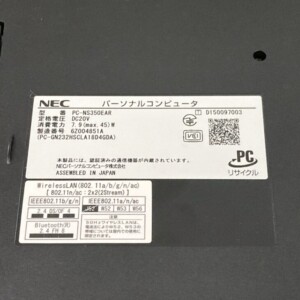 今回のPC-NS350EARは外観のスレや使用感があるものの、起動・操作が問題なく行える点や、カラー需要の一定の高さを総合的に評価し、5,000円で査定いたしました。他社では古めのノートパソコンは4,000円程度の買取が多く見られますが、当社では需要動向・部品価値・再販売ルートを踏まえることでより高い査定額をご提示しています。