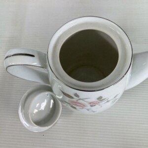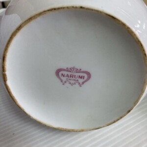 お送りいただいたナルミの陶器ポットは、外観に通常使用に伴う薄い擦れや僅かな汚れが見られる状態でした。割れや大きな欠けは確認されず、蓋の取っ手部分や注ぎ口の縁も比較的きれいに保たれていました。ポット底面の「NARUMI CHINA」刻印もはっきりと残っており、内部も使用感はあるものの著しい汚れは見られません。年代は不明ですが、ローズ柄があしらわれた人気シリーズの一つで、コレクション・日常使い両方に適した陶磁器製品です。