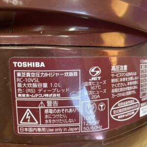 福岡県行橋市のお客様より 東芝 真空圧力IHジャー炊飯器 RC-10VSL を出張買取 使用感ありのため状態を踏まえて査定しました