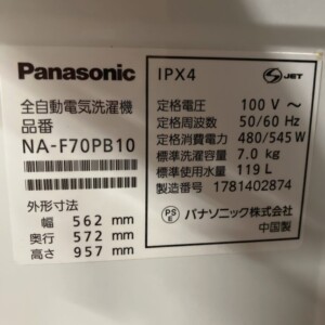 和泉市でPanasonic NA-F70PB10を出張買取|7kg洗濯機を適正価格で査定しました