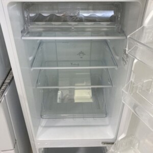 お預かりした冷蔵庫は外装にやや小傷と使用感が見られましたが、庫内は比較的綺麗に保たれており、冷却・霜取り・棚板などの機能面は問題なく動作していました。付属の棚・トレイも揃っており、欠品はありませんでした。