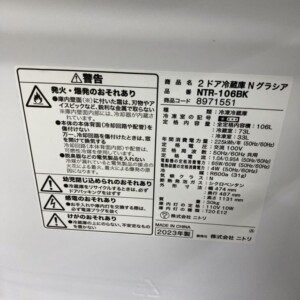 NTR-106BKは単身~2人暮らしまで幅広く需要があり、特にブラックカラーは中古市場でも人気が高い傾向にあります。2023年製で状態も良好だったため、今回の買取価格は4,500円とさせていただきました。他社よりも高く査定できた理由は、当社の単身向け家電の販売回転率の高さにあります。