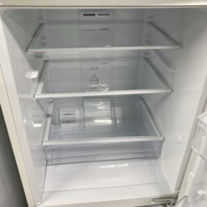 お預かりしたAQR-17Kは全体的に清潔感のあるきれいな状態で、庫内の棚や野菜ケースも割れや汚れはなく良好でした。外装にも大きく目立つへこみは見当たらず、通常使用に伴うわずかなスレ程度の状態です。冷却動作・設定パネルも問題なく動作していました。