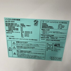 神奈川県川崎市でハイアール BR-85A(2024年製)冷蔵庫を出張買取|比較的きれいな状態で適正価格にて査定しました