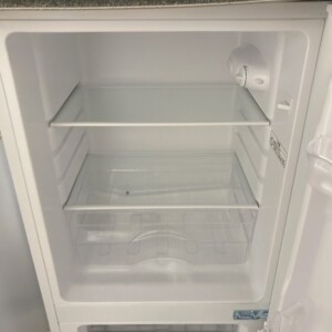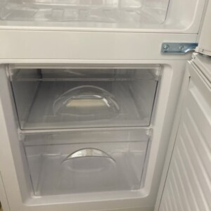 NTR-106WHは外観・庫内ともに非常にきれいな状態で、目立つ傷や汚れはありませんでした。冷蔵室のガラス棚やクリアケースも割れや欠けがなく、内部のにおい残りもなし。冷凍室の引き出しもすべて揃っており、動作確認も問題なく行えました。