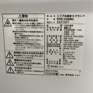 群馬県昭和村でニトリ NTR-106WH(2023年製)冷蔵庫を出張買取|きれいな状態で需要が高いため高めの査定額をご提示しました