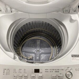 お買取した洗濯機ES-GE6J-Sは外装・洗濯槽共に使用に伴う細かな擦れ傷や汚れが若干見受けられる状態でしたが、大きく目立凹みや破損無く、内部のステンレス槽も清潔で、また付属の給水ホースも揃っており動作も問題なく確認できました。