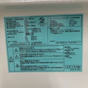 静岡県函南町でハイアール JR-N91K(2016年製)冷蔵庫を出張買取|年式が経過したお品物を状態良好のため適正価格で査定しました