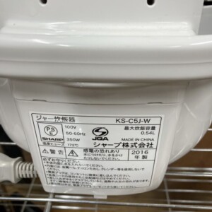 大阪府羽曳野市でシャープ炊飯器 KS-C5J-W 2016年製を出張買取 綺麗な状態の3合炊きを適正価格で査定しました