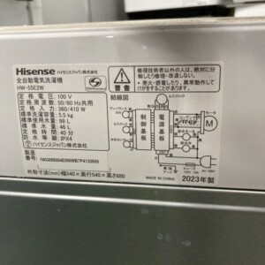 HW-55E2Wは2023年製と非常に新しく、洗濯槽内の状態、外観のきれいさ、付属品の完備などから中古市場でも高い再販価値が期待できるモデルでした。また、ハイセンス製洗濯機は機能性と価格バランスの良さから人気があり、需要の高さも加味して査定を行いました。